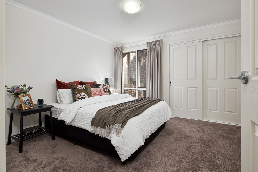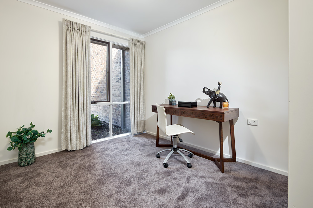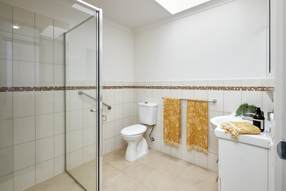 The central bathroom is conveniently positioned between two luxurious bedrooms, each with built-in robes. With generous proportions throughout, this home offers spacious retirement living at its best.